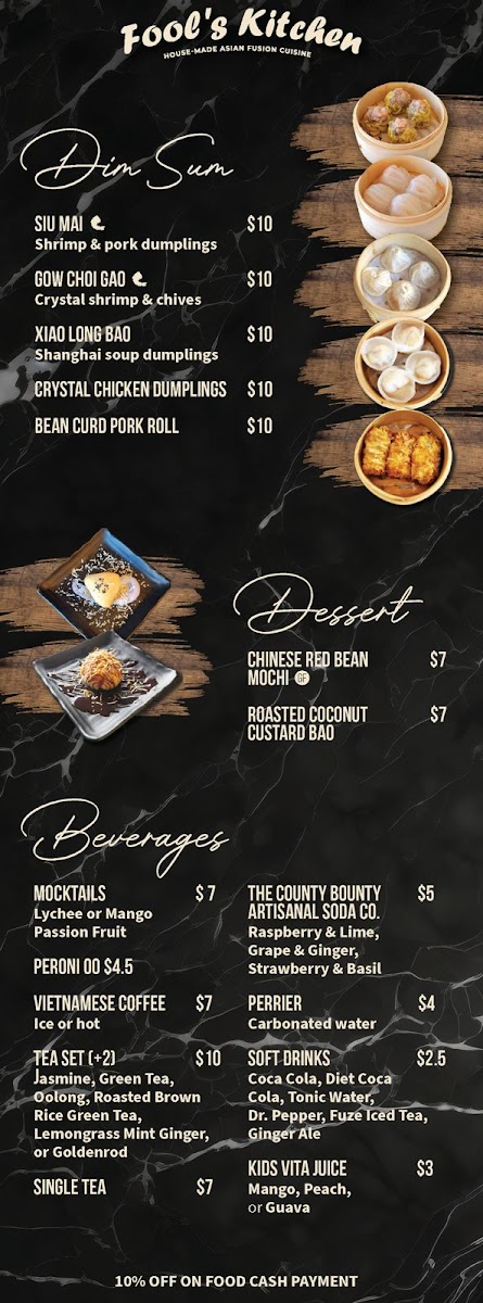 The menu at Fool’s Kitchen offers a thoughtful take on Asian fusion cuisine, with a focus on fresh, hand-prepared dishes that suit a range of occasions. Whether you’re stopping by for a relaxed lunch or settling in for an intimate dinner, the selections invite you to savor familiar flavours presented with care and a twist.