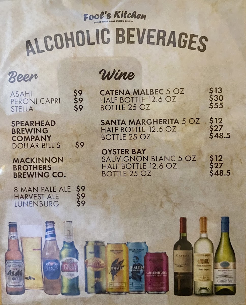 Fool's Kitchen Menu